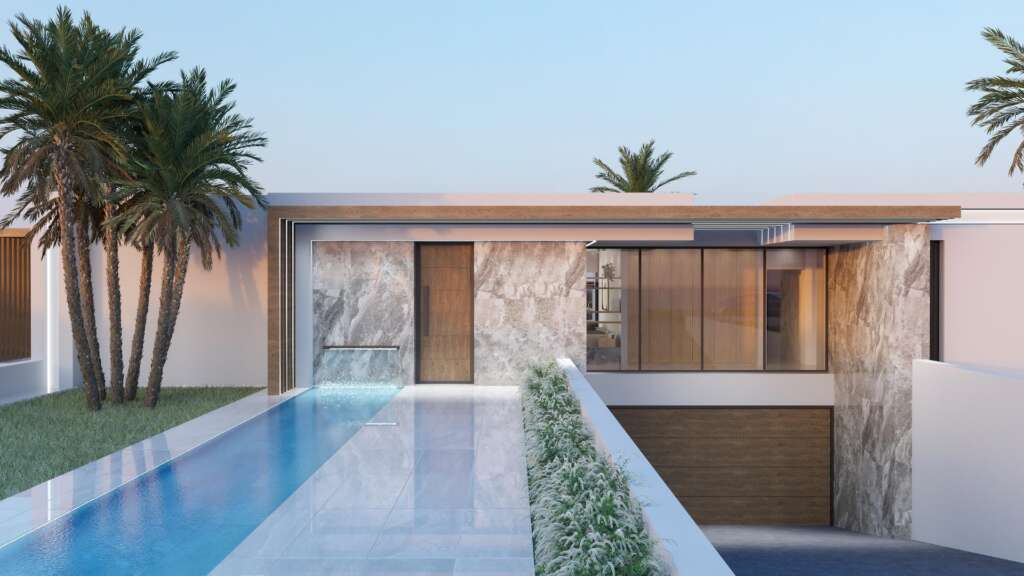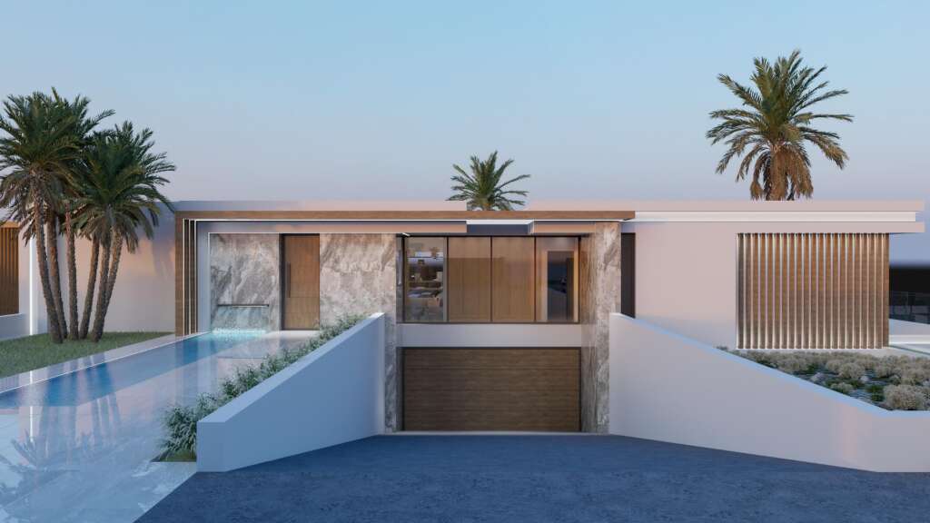 The residence is developed in two zones, communal and private areas, which are separated in terms of floor plan and elevations. As far as the design is concerned, it was chosen to create a profile that runs through the roof and vertically, where necessary, in order to separate the different zones. Complementary, horizontal and vertical elements in wood texture create additional canopies and separating filters where necessary.
